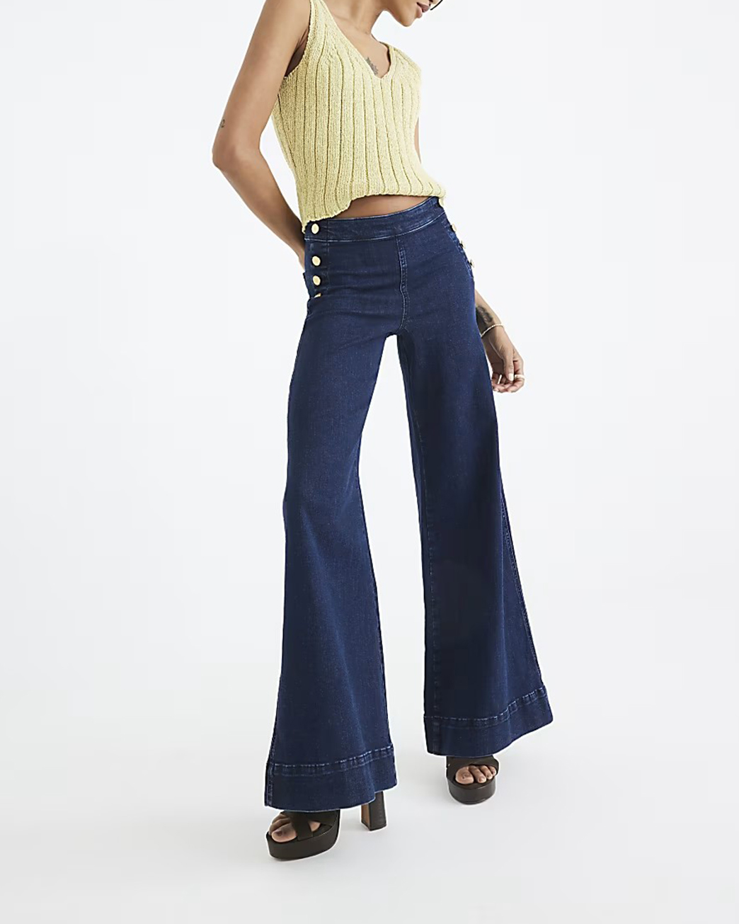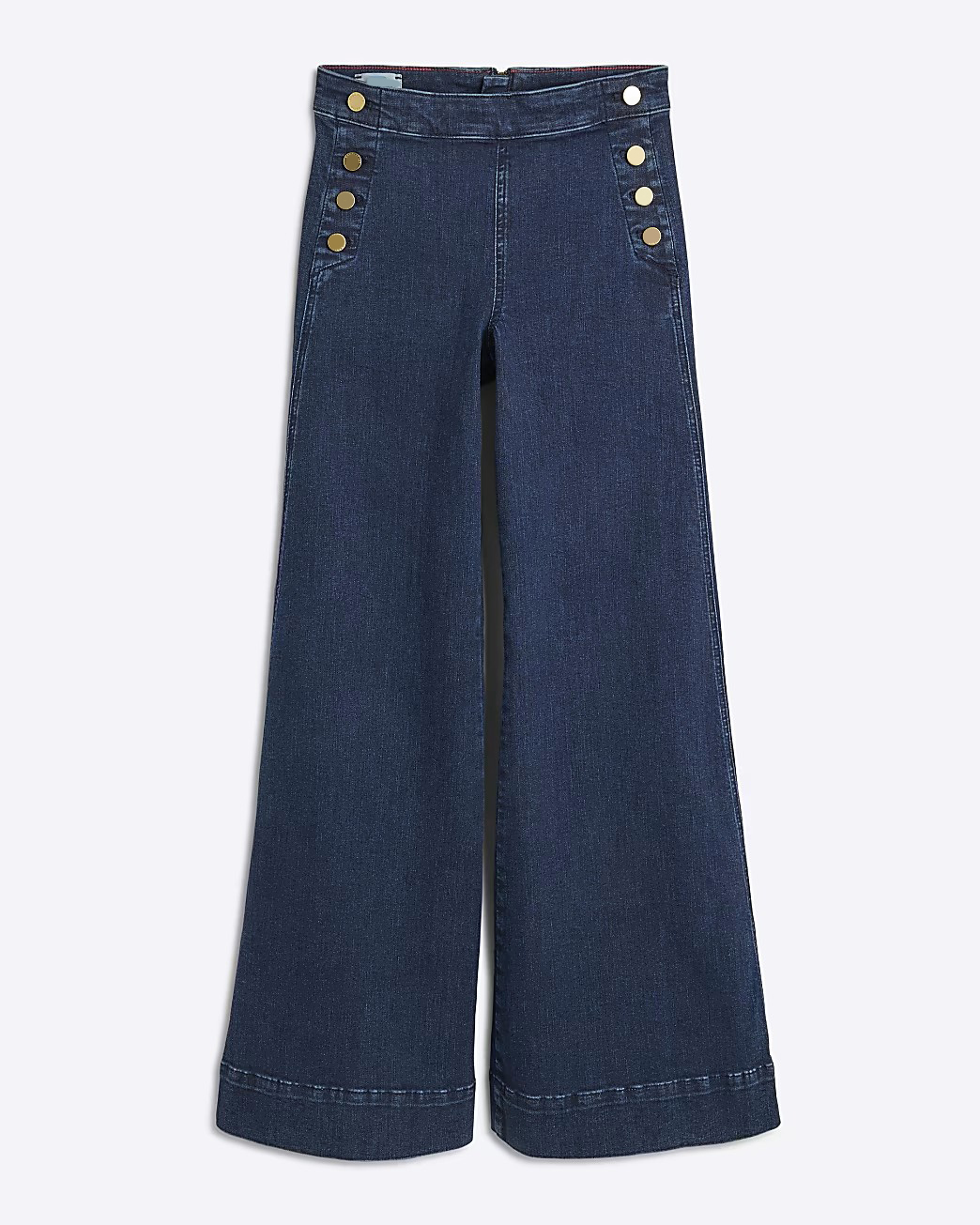Button-Decorated High-Waisted Women's Bootcut Trousers