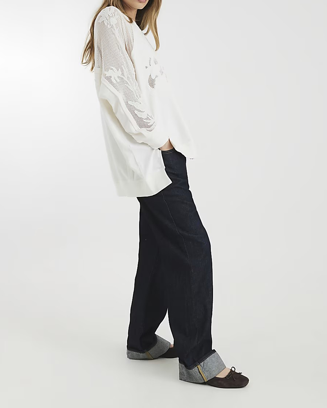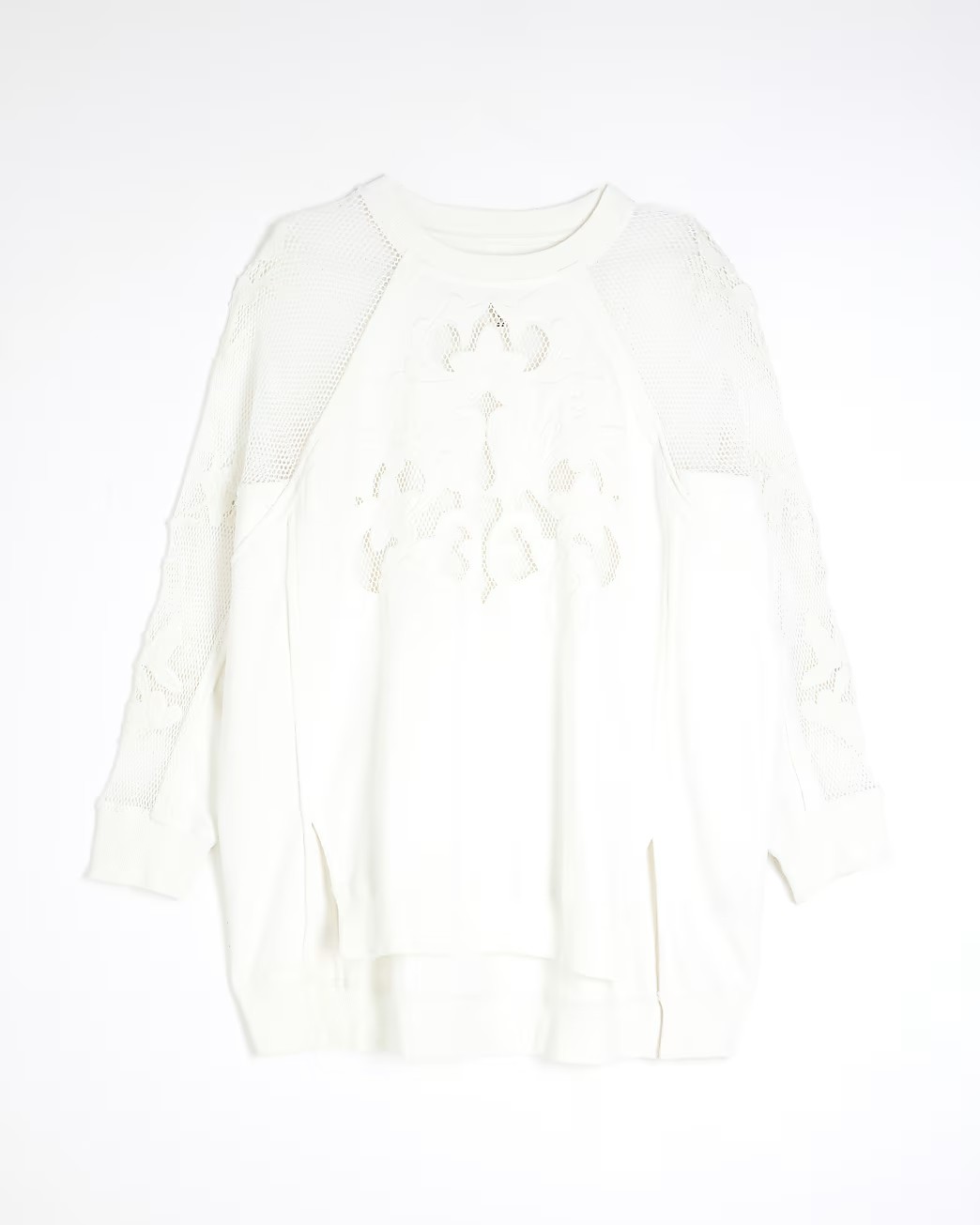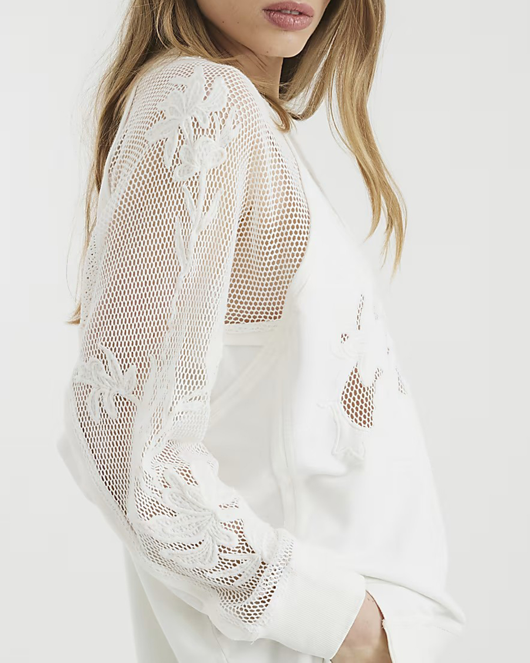 Cream Shoulder Art Hollow Cotton Sweatshirts