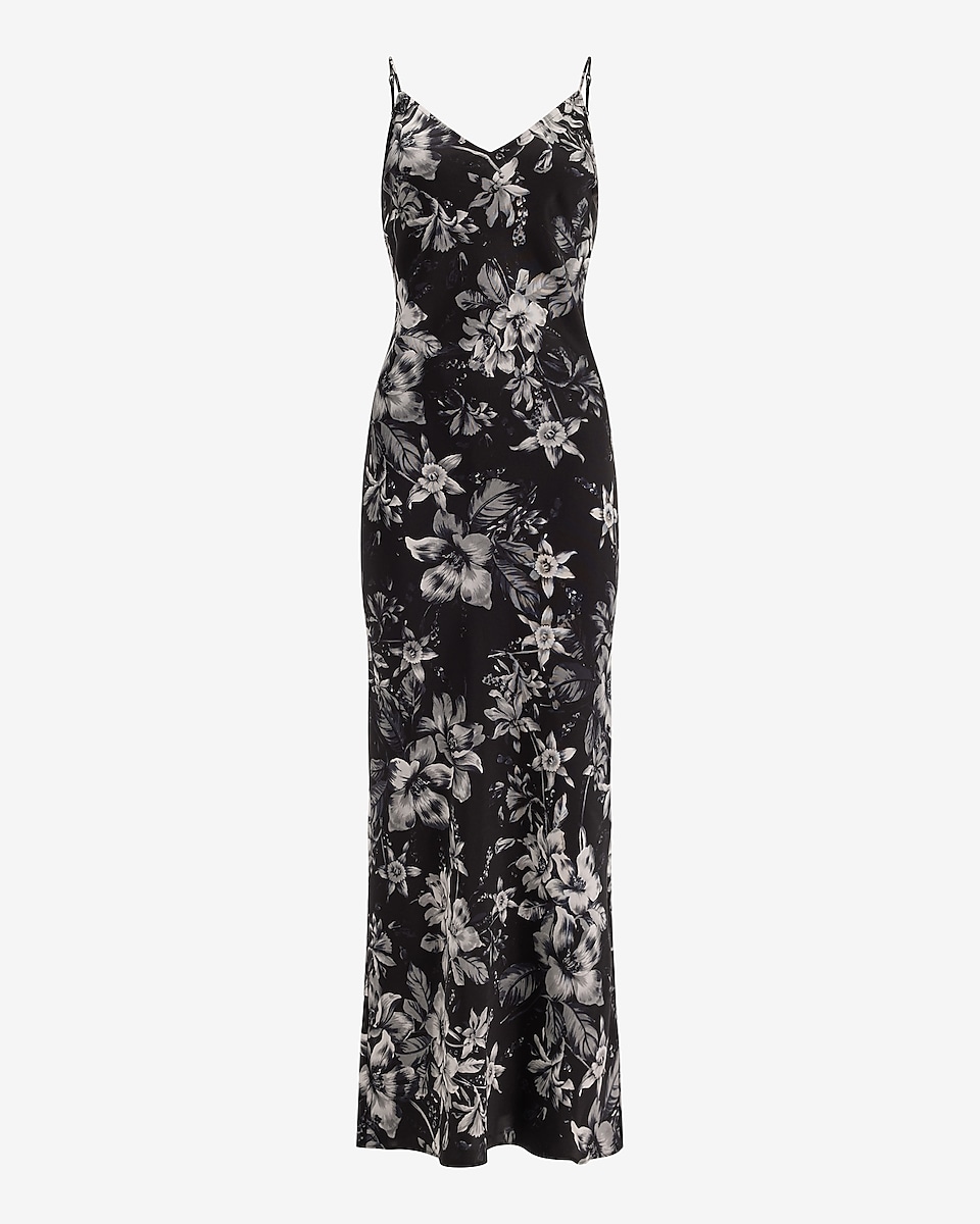 Floral Satin V-Neck Maxi Downtown Cami Slip Dress