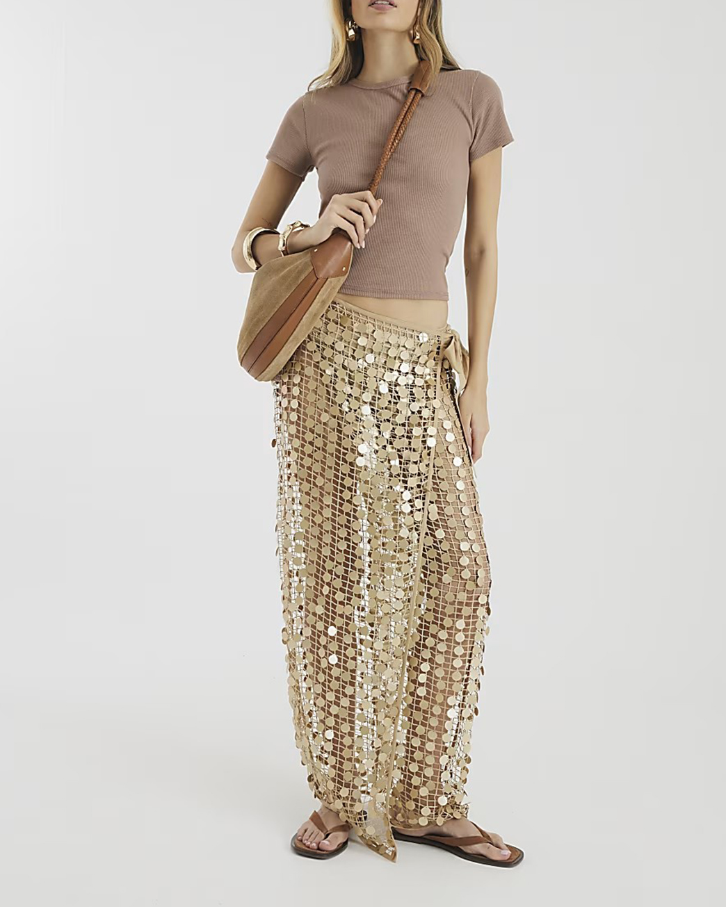Gold Sequin Art Style Women's Long Skirts 5291