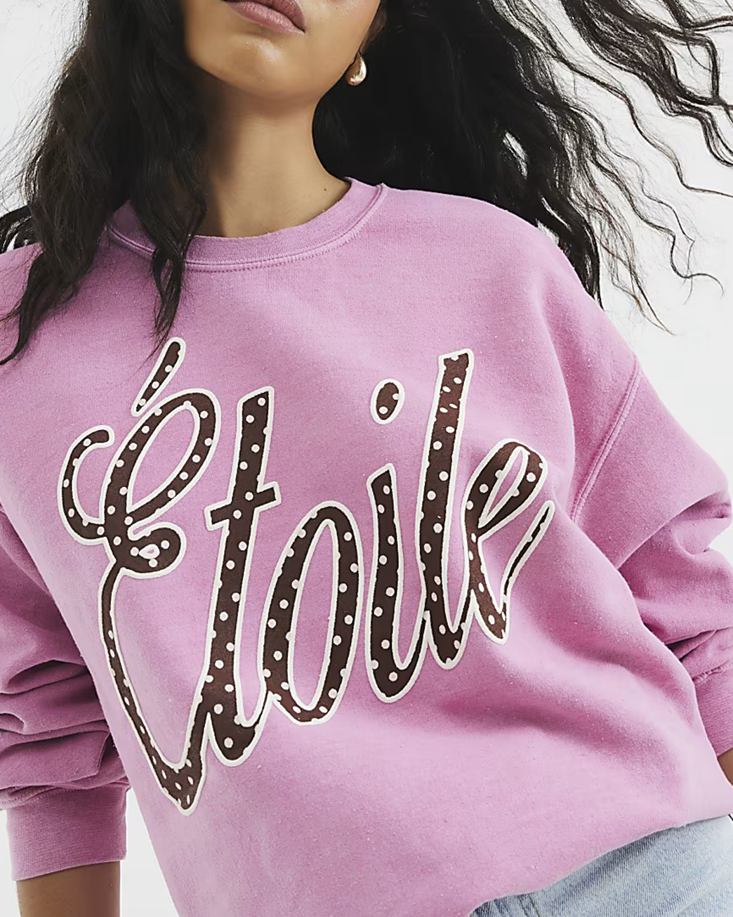 Pink Round Neck Letter Print Women's Sweatshirts 6514