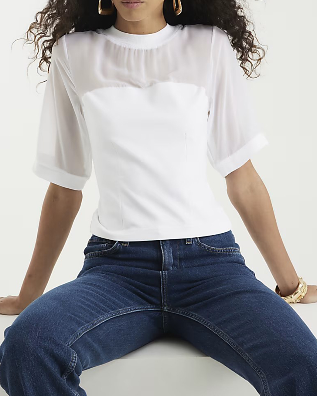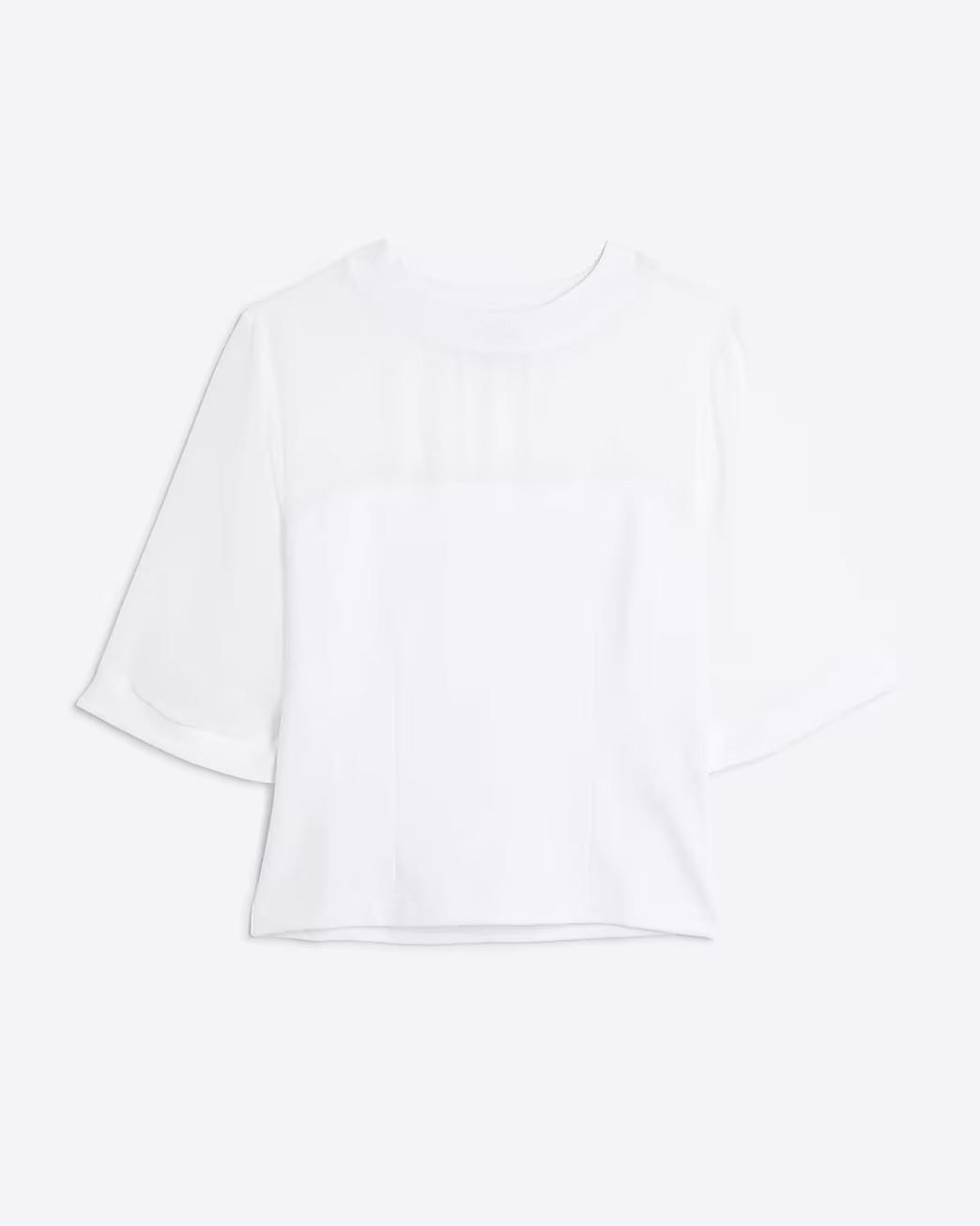 White Mesh Double Breathable Ladies Short Sleeves 5234